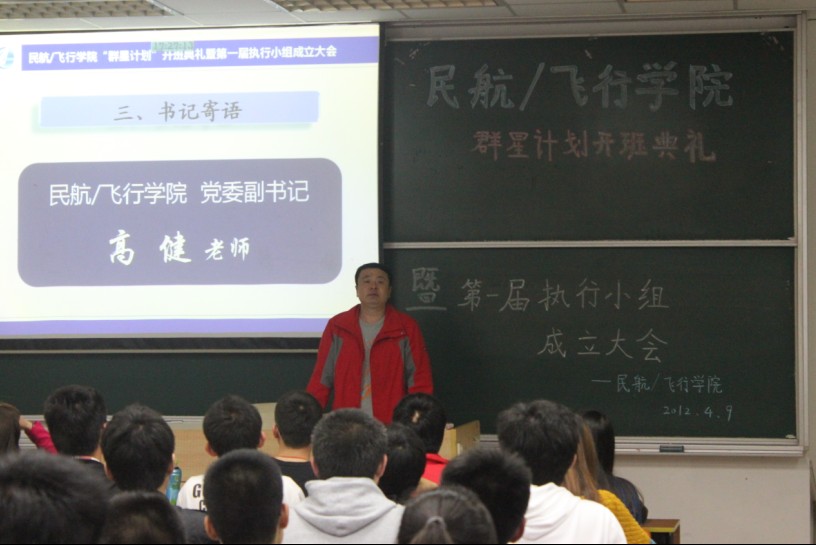 4月9日下午5点整,民航/飞行bob体育 正式召开群星计划开班典礼,暨第一届执行小组成立大会。参加会议的有bob体育 党委副书记高健老师、bob体育 团委书记傅成成老师、各年级的辅导员以及各班班委代表。