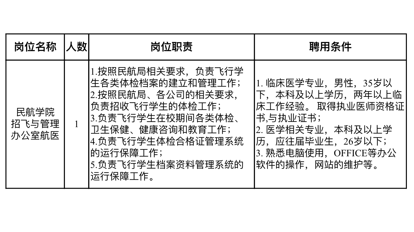 根据工作需要,bob体育-bob体育app-bob体育官网 拟以劳务派遣方式招聘航医1名,具体要求和工作职责如下: