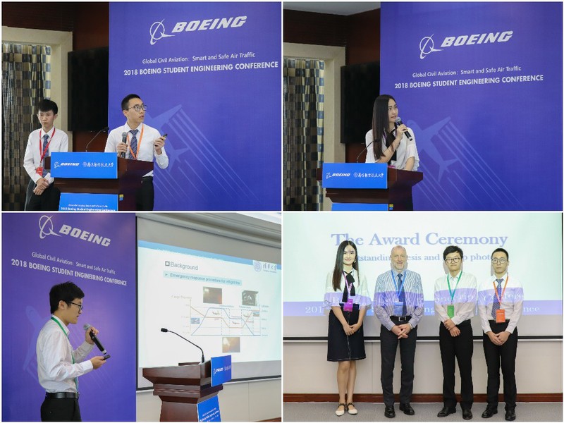 与往届论坛不同,本次波音论坛首次采用了论文征集的方式,从40余篇论文中遴选出3篇优秀论文,由评审组评审和波音公司的专家进行点评,选出本次论坛的最优论文。来自华南理工大学、南京航空航天大学、清华大学的三组学生代表进行优秀论文答辩,经过波音公司与会专家的评审,来自清华大学李聪的论文摘得“最佳论文称号,另两篇文章也获得“优秀论文”的荣誉。波音上海航空服务有限公司CEO Dermot Swan先生为论文作者进行了颁奖。