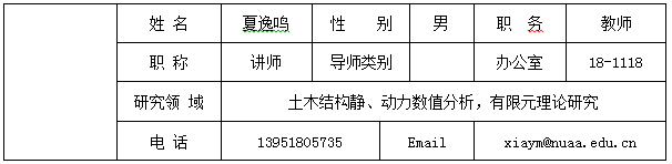 2004/03-至今,南京航空航天大学,土木工程系,讲师