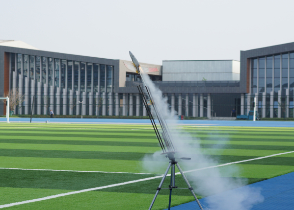 演出在航模队教练袁伟老师带来的“冲天飞龙”火箭助推滑翔机表演中拉开帷幕。随着火箭发动机的轰鸣声,飞机似离弦之箭,割开空气,直冲云霄。袁伟老师曾获全国冠军5次,世界杯冠军2次,亚洲锦标赛冠军1次。