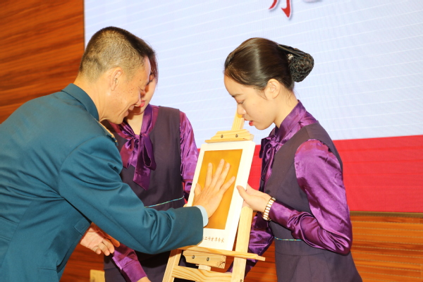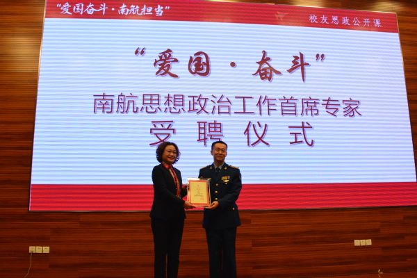 作为“爱国奋斗 南航担当”校友思政系列公开课,在此次报告会开始之前,举行了“爱国·奋斗”南航思想政治工作首席专家聘任仪式,王晖为李中华颁发了“南航思想政治工作首席专家”聘书,随后进行了专家手印采集仪式,李中华留下手印并签名,学校将把这枚珍贵的手印在校史馆永久珍藏。