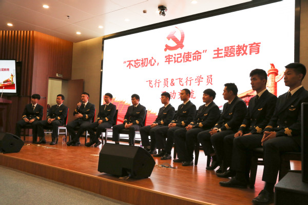 下午,三个支部党员与民航/飞行bob体育 2019级东航飞行学员在天目湖校区巡天楼一楼报告厅开展“不忘初心,牢记使命”主题教育交流会。