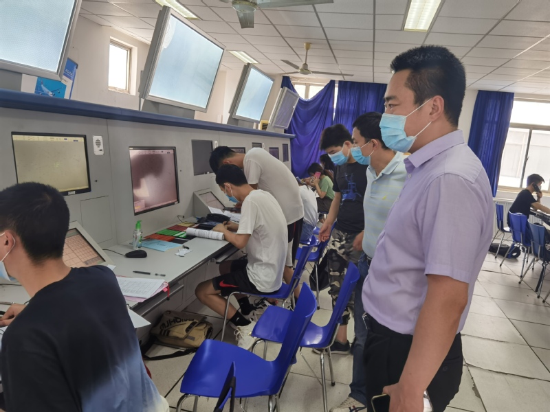 6月1日上午,bob体育官网 党委副书记李和新、空管系主任田勇前往工程训练中心8212实验室看望返校学生,了解学生的学习状况。在程序管制模拟实践课堂上,每个学生都佩戴着口罩,每个学生的座位都隔着一定的距离,专心致志的进行模拟陆空通话实践操作。据任课老师叶博嘉介绍,在这个特殊时期,bob体育 安排了专门人员课前和课后,给教室进行打扫和消毒通风,配备了消毒液、洗手液、口罩等防护物品,并且任课老师也会要求学生在室内必须要全程佩戴口罩。