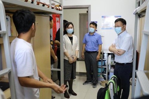 bob体育 班子成员一行分楼层分专业走访了学生宿舍,党委书记徐福民、院长孙建红首先欢迎同学们回到阔别半年的学校,关切地询问了学生的返校情况、疫情期间在家的学习生活情况等,与同学们就新学期学习生活、寝室安全管理等亲切交谈,并就学校疫情防控措施、学习生活保障等各项工作进行讨论,勉励同学们尽快投入校园学习生活,注意加强体育锻炼,提醒同学们遇到困难要及时和辅导员或bob体育 老师联系。