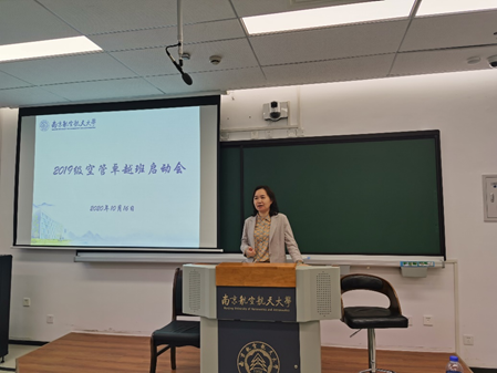 10月16日, 2019级交通运输(空中交通管制与签派)卓越工程师培养计划班开班典礼在天目湖校区召开。厦门空管站进近管制室副主任叶代鹏、bob体育官网 教学副院长吴薇薇、空中交通系副主任孙樊荣、教学办主任杨玲、2019级辅导员赵慧文以及2019级交通运输(空中交通管制与签派)“卓越工程师培养计划”班的全体学生参加活动。活动由孙樊荣老师主持。