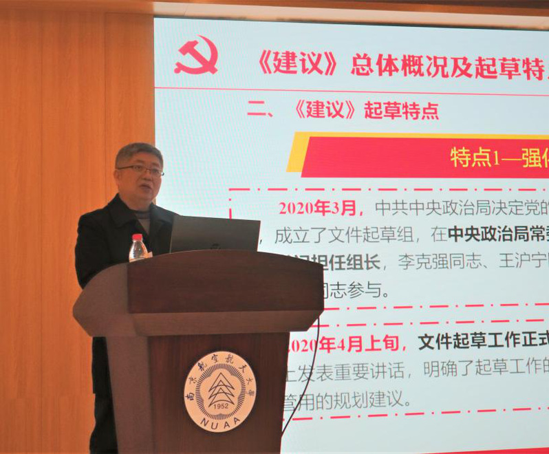 李部长首先强调党的十九届五中全会是我党在全面建成小康社会胜利在望、全面建设社会主义现代化国家新征程即将开始的重要时刻召开的一次具有全局性、历史性意义的重要会议。紧接着,李部长详细解读了《建议》的总体概况以及起草时强化顶层设计、坚持问计于民、广泛凝聚共识的三个特点;深刻阐述了十九届五中全会中“四个新”的具体内涵:开启全面建设社会主义现代化国家新征程、到二〇三五年基本实现社会主义现代化的新愿景、“十四五”时期经济社会发展的新目标和五中全会提出的一系列新论断。
