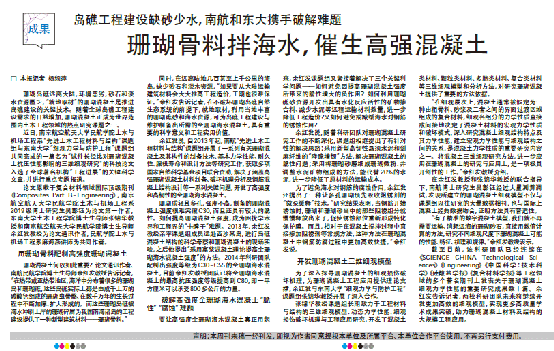 4月29日,全球最大学术出版商Elsevier官方微信(“爱思唯尔Elsevier”)以“高强全珊瑚海水混凝土——助力岛礁工程建设”为题,在头条位置重点报道我校bob体育官网 土木与机场工程系“先进土木工程材料与结构”课题组与东南大学“细观力学与防护工程”课题组共同完成的“试件长径比对珊瑚混凝土抗压性能影响的三维细观研究”的学术论文(Composites Part B-Engineering,2020,198:108025)和论文作者。