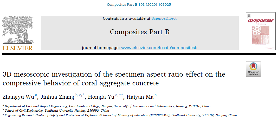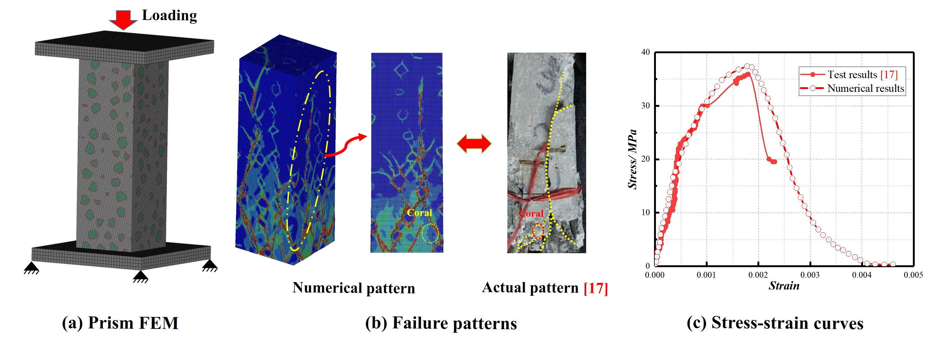 最近南京航空航天大学余红发教授和东南大学张锦华教授团队在Elsevier旗下的Composites Part B: Engineering期刊联合发表了关于珊瑚混凝土细观力学行为及损伤破坏机理的研究论文。