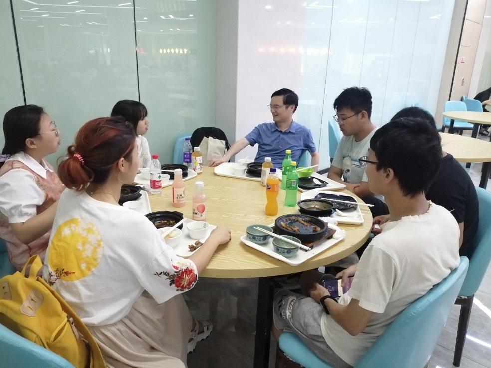 最后,师生们在食堂共进午餐,用餐过程中亲切交流同学们生活、学业和科研发展方面的问题。