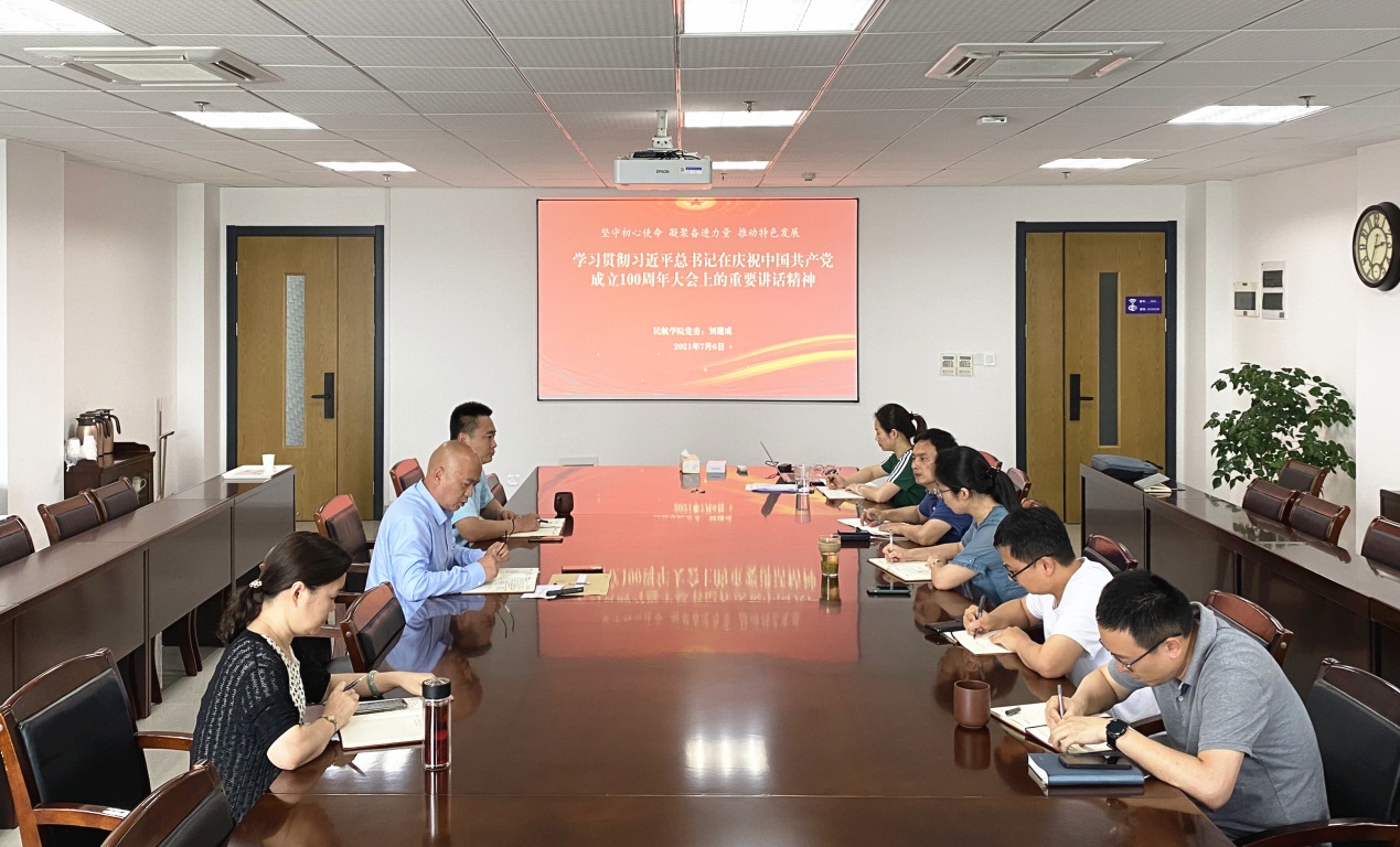 首先,刘建成书记进行领学,以“坚守初心使命 凝聚奋进力量 推动特色发展--学习贯彻习近平总书记在庆祝中国共产党成立100周年大会上的重要讲话精神”为题,他指出,总书记讲话精神立足中国共产党百年华诞的重大时刻和“两个一百年”历史交汇的关键节点,回望光辉历史、擘画光明未来,是一篇马克思主义纲领性文献,是新时代中国共产党人不忘初心、牢记使命的政治宣言,讲话鲜明提出了伟大建党精神,值得所有党员认真学习和传承。随后,刘建成从“一个庄严宣告”“一个伟大梦想”“四个伟大成就”“一个伟大精神”“九个必须”“两个宣誓”“一个殷切期望”“一个号召”八个方面带领大家系统学习了讲话精神,并结合自身成长历程,分享了生在新中国长在国旗下的光荣和自豪,立志传承伟大建党精神,紧抓民航发展的新机遇,尽好实干担当之责,带领全院师生共谋建设特色鲜明的国际一流bob体育官网 事业,为实现第二个百年奋斗目标勇担使命。