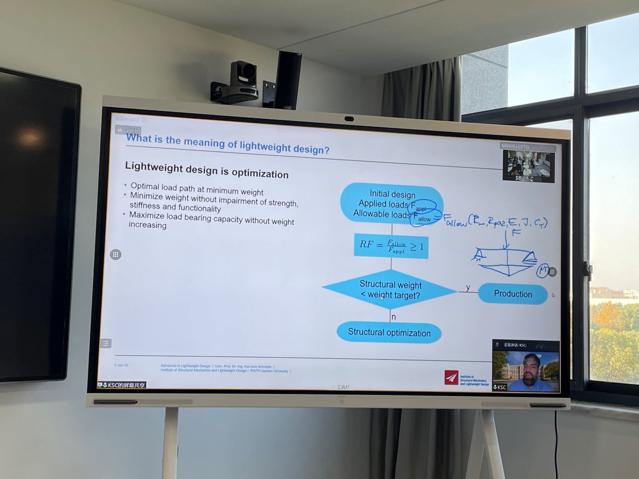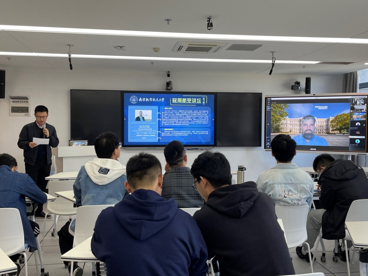 11月18日下午,“民用航空讲坛”第十六期讲座在将军路校区A08号楼312智慧教室成功举行。本次讲座由bob体育官网 黄天翔老师主持。德国亚琛工业大学结构力学和轻量化设计研究所(SLA)所长Kai-Uwe Schröder教授为师生带来了一场围绕轻量化设计展开的线上讲座。