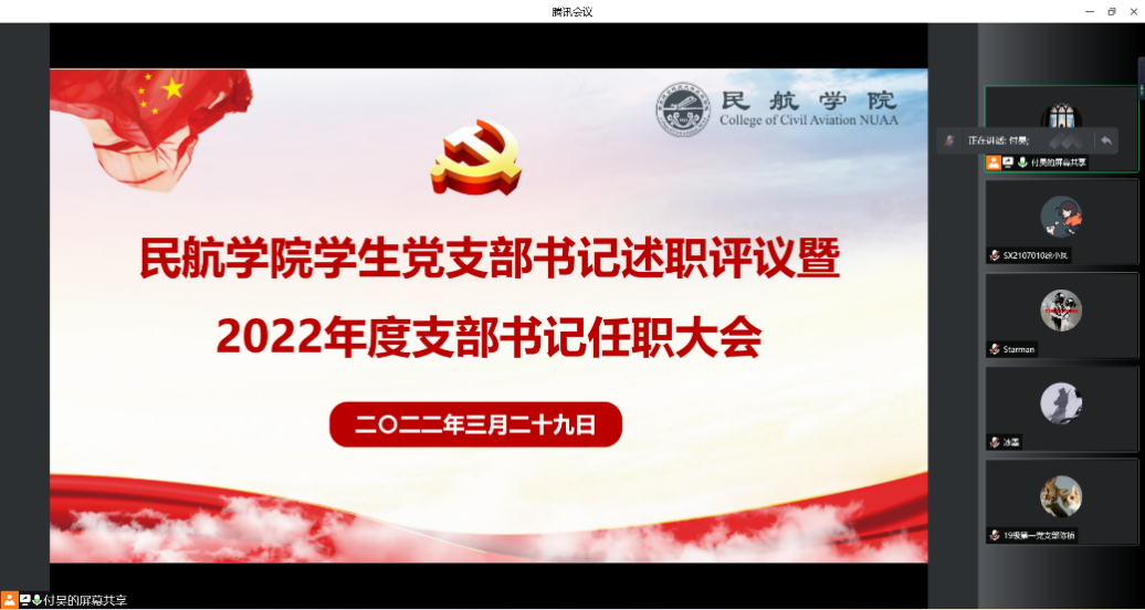 3月29日下午14:30民航楼1214会议室,bob体育官网 2021年度学生党支部书记述职评议暨2022年度支部书记任职大会顺利召开,因疫情防控需要,本次会议采用线上线下相结合的方式进行。bob体育 党委书记刘建成、党委副书记王艳、正科级组织员侯美丽以及各学生党支部书记线下参加会议,各学生党支部支委会其他成员线上参会。会议由bob体育 辅导员付昊主持。