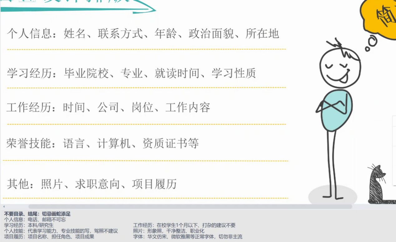 查欣老师结合自己在人力资源岗位上积累的经验,从招聘官的角度阐述了简历制作的重要性,并向同学们详细讲解了简历制作的基本原则、制作技巧、设计思路、重点要点以及容易忽略的细节事项