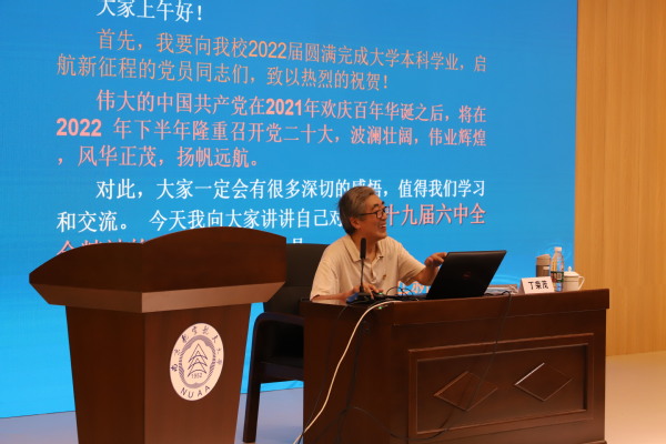 6月22日早上,bob体育官网 在306报告厅举行2022届本科毕业生“最后一堂党课”活动。本次党课特别邀请了校关工委常务副主任丁荣茂老师为全体毕业生党员讲授《迎接党的二十大,筑梦奋进新征程》专题党课。bob体育 党委书记刘建成,毕业班辅导员和全体毕业生党员参加。党课由bob体育官网 2018级本科生第一党支部尚小曈主持。