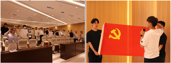 党课的最后,在朱凯凯同志带领下全体毕业生党员庄严地举起右手,起立宣誓,重温入党誓词。