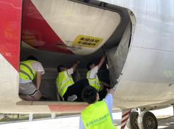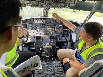 在飞机系统和部件认知实验环节中,学生通过克服机坪60多度的高温,将专业课程的知识在真实飞机上面进行了进一步的验证和提升。