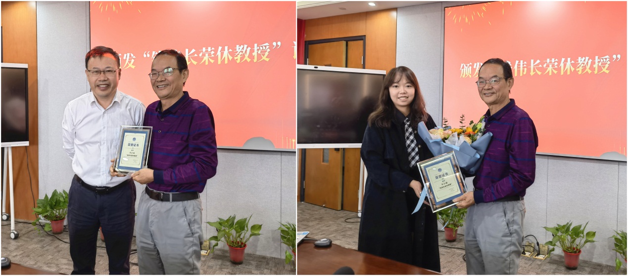 在接下来的师生座谈中。王艳和青年教师黄天翔纷纷表达了对朱老师事迹的敬仰,以及对朱老师退休生活的祝福。学生臧海培作为朱老师的博士关门弟子也在师生座谈中发表了对朱老师严谨治学教学风格的诚挚认可和对授人以渔教学内容的殷切感恩。