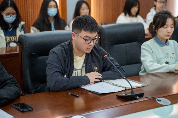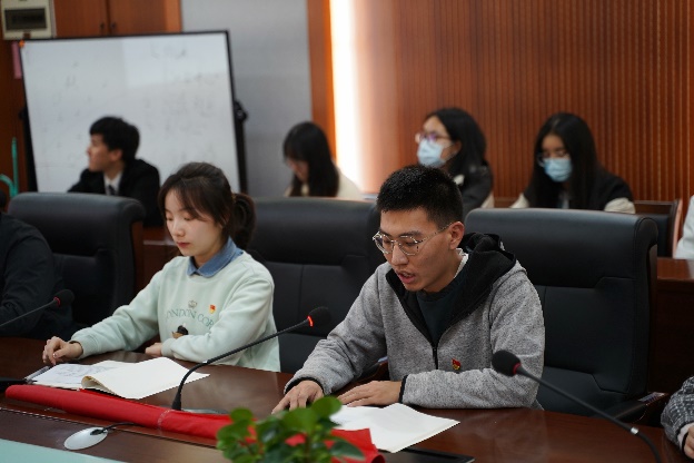 在讨论研习环节,本科生党员代表王泽源结合自己担任bob体育 青年志愿者协会主席团成员的经历,指出广大青年要牢记习近平总书记的嘱托,坚定不移听党话、跟党走,坚持与时代同步、与国家同频,在志愿服务中发出民航学子的最强音,让青春在服务社会与人民中闪耀光芒。本科生团员代表、0720201团支部书记吕文畅介绍了支部近期开展党的二十大精神主题学习的情况和个人心得,表态要充分发挥团干部的模范带头作用,带领支部团员共同在青春的赛道上奋力奔跑。研究生党员代表陆溪结合自己在民航领域开展的科研实践,提出民航青年应当不断修学储能,在交通强国建设中彰显青年担当。研究生团员代表刘志昊重点分享了党的二十大报告中对教育、科技、人才重要性的论述,指出当代青年应树立远大的理想和抱负,踏实学习、潜心科研,做到胸怀祖国、追求真理、勇攀高峰,为建设社会主义现代化强国奉献青春、贡献力量。