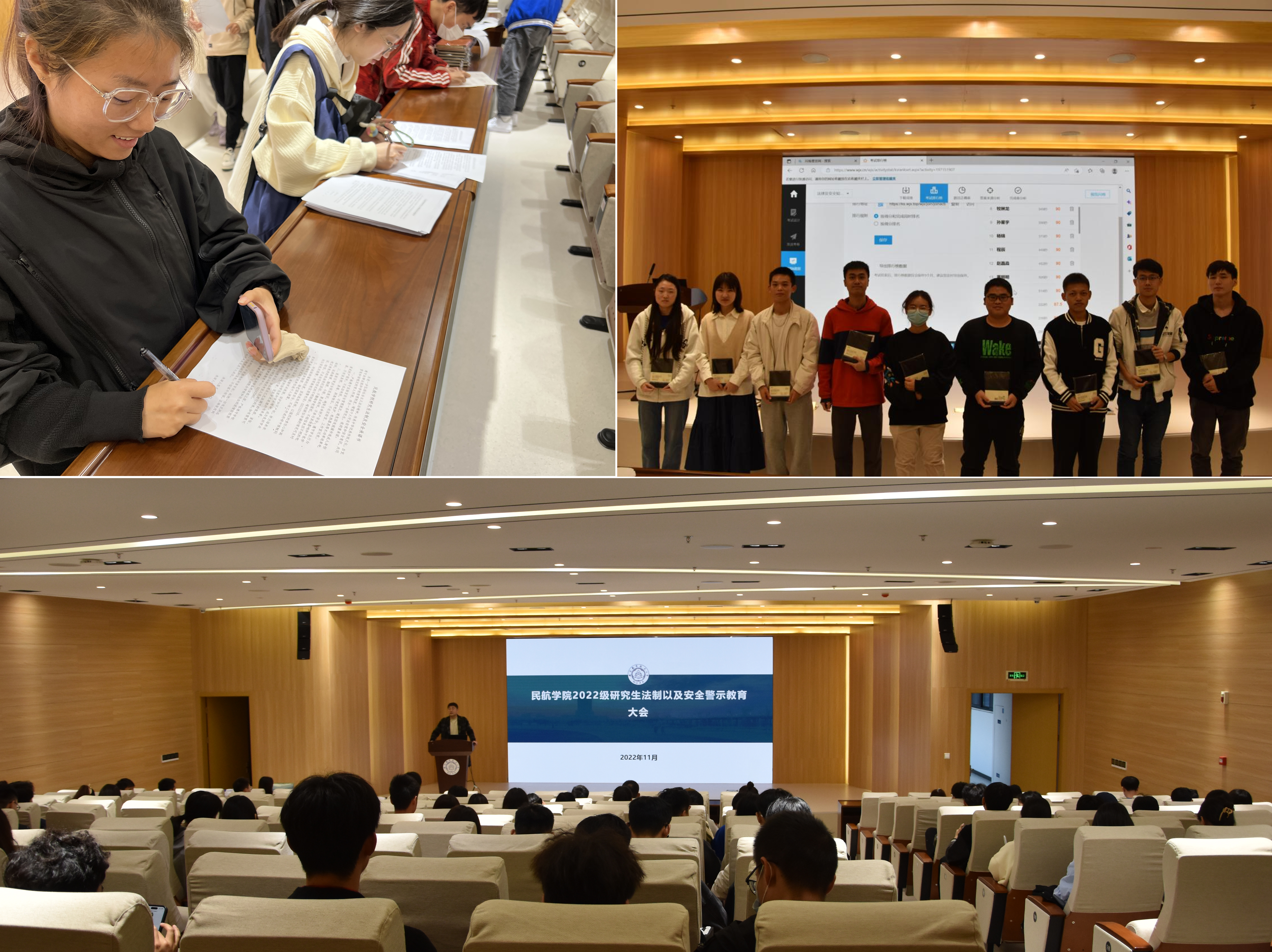 本次大会主要分为学生代表领学、辅导员专题解读、法制及安全警示承诺书签订、应知应会法制安全知识竞赛四个环节,重点涉及实验室安全教育、校园安全及防诈骗教育、保密安全教育、学术诚信与科学道德教育、校园网络安全教育、心理健康教育、校园传染病预防等与研究生紧密相关的各大领域。