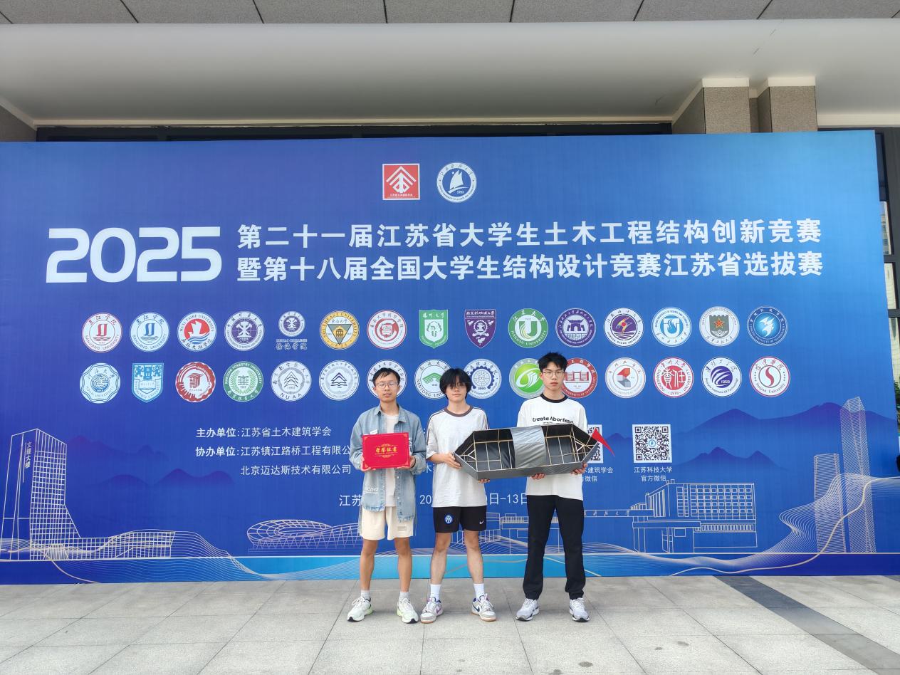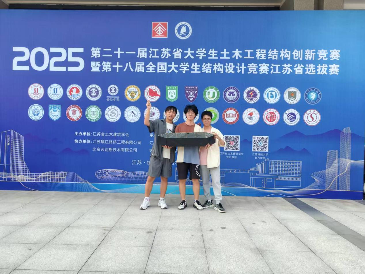 在刚刚落幕的2025年江苏省大学生土木工程结构创新竞赛暨第十八届全国大学生结构设计竞赛江苏省选拔赛中,bob体育官网 土木学子再创辉煌,荣获模型加载组特等奖1项(总排名第2名)、二等奖1项,以及模型展示组一等奖1项(总排名第5名)。