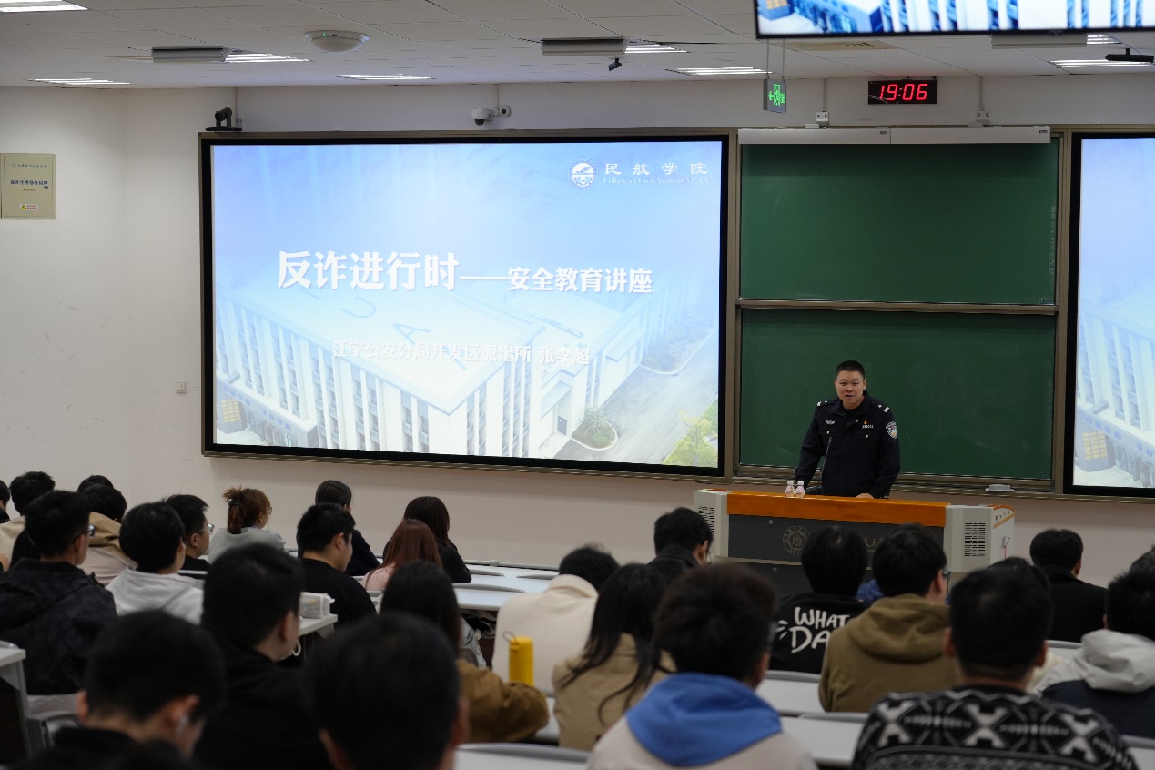 为进一步增强学生防范电信网络诈骗的意识和能力,切实维护校园安全稳定。10月30日,江宁公安分局开发区派出所张李超警官走进校园,为bob体育官网 2025级硕士研究生带来了一场以“反诈进行时”为主题的安全教育讲座。