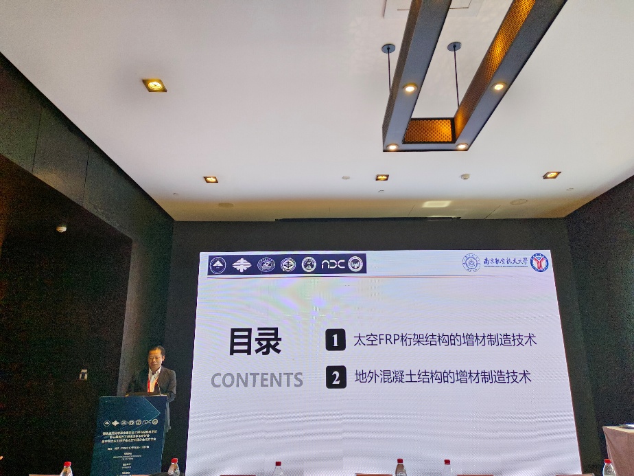 大会设主论坛和6个专题论坛,余红发受邀以《太空FRP桁架结构与地外混凝土结构的增材制造技术研究进展》为题做特邀报告。介绍了我校纤维增强复合材料(FRP)桁架空间结构的太空在轨增材制造技术、地外星球水泥混凝土3D打印技术及其装备研发工作。他表示,要打破传统学科界限,促进土木工程与航天工程等多学科的深度融合,构建“土木+太空”人才培养与学科发展的交叉学科新模式,培养兼具空间结构设计能力与深空资源利用视野的复合型人才,为我国航天工程提供从基础材料研发、装备制造到工程实施的全链条技术支撑,最终实现学科发展与国家战略需求的同频共振。