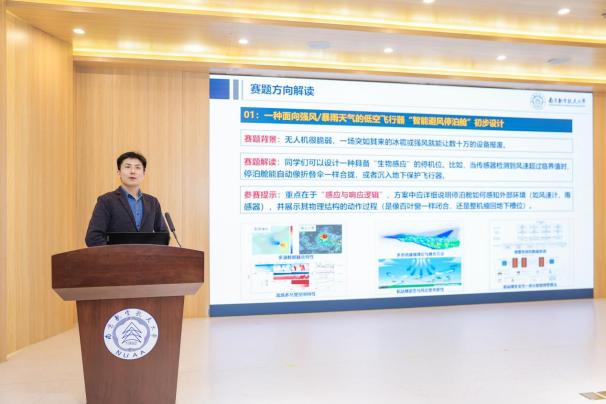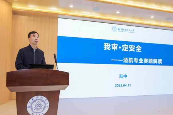 随后,陆中、张军峰、陆婧、俞健、朱培、肖飞六位教师作为赛题解读人依次登台,立足行业真实痛点与技术前沿,围绕空中交通管制与签派、民航运输管理及交通运输+大数据管理与应用、民航电子电气工程、飞行器适航技术、机场运行与管理、机场工程与智能建造六大赛题进行剖析,为同学们厘清创作思路与评审标准,引导大家将课堂理论转化为解决实际问题的“金钥匙”。最后,丁琛郑重宣布赛事正式启动。