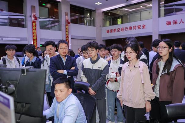 全体成员分组前往中国航空工业集团公司金城南京机电液压工程研究中心、中国民用航空华东地区空中交通管理局江苏分局、东部机场集团有限公司、中国东方航空江苏有限公司、南京航空航天大学国际创新港、六合高新科技城等单位一线开展实践研学。通过实地走访观摩工作一线场景、与企业技术骨干面对面交流,同学们将课堂上的理论与行业实际需求相结合,深刻体悟民航系统高效协同、安全运行的底层逻辑,为学生参赛备赛提供更广阔的专业视角。