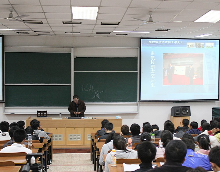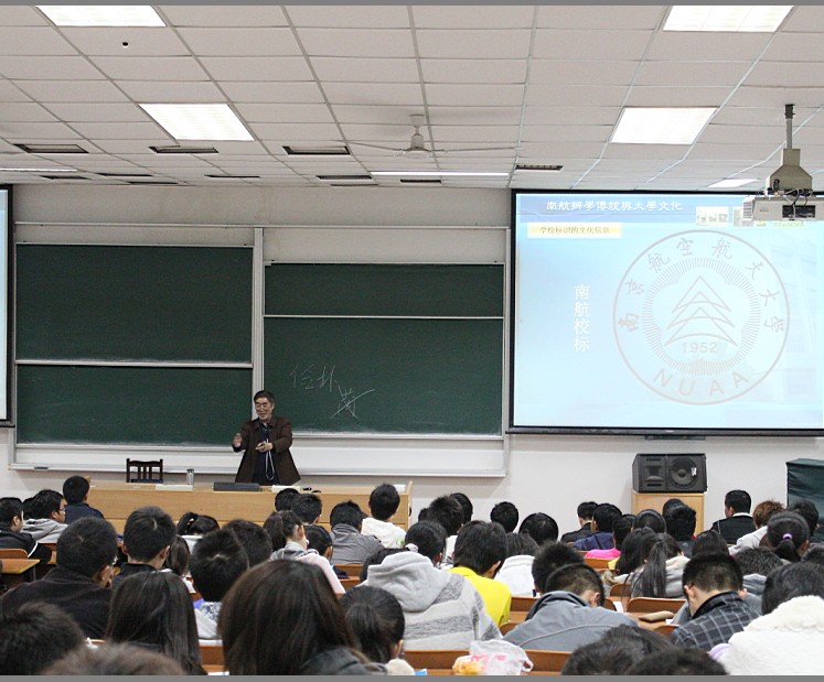 讲座由民航飞行bob体育 团委书记杨玲老师主持,在现场热烈的氛围中,丁荣茂书记开始了主题讲座。丁书记先向同学们介绍了了南航建校以来的历史,让每位同学切身感受到南航从一个专科学校白手起家成为一个全国211工程大学的整个历程。接着,他分别讲解了南航的校训、校风和校歌的来历和含义,例举出南航学子五十多年来在社会上做出的辉煌成就,讲述了南航的科技研究在国家科技发展道路上做出的巨大贡献,鼓励同学们继续把南航精神发扬光大。在谈到大学文化时,丁书记对比了很多国际知名大学的传统文化,让同学们深刻的了解到,一个知名的学府,厚重的历史文化是学子们的精神皈依。