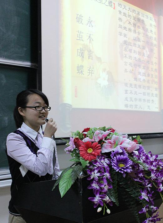 2009级学生辅导员张文涛对表彰大会进行了总结。他热情赞扬了“感动0709”八位同学所体现的民航精神,同时也感谢了台前幕后为晚会默默付出的工作人员,晚上21:00,表彰大会圆满地落下帷幕。