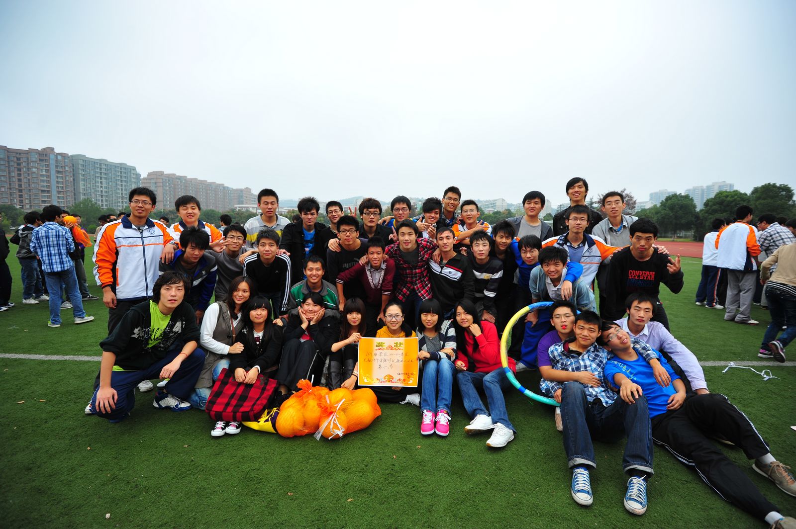 本届趣味运动会共有六支班级代表队参加,设有三个项目,既有展现团体风貌、考验团队协作精神的“齐心协力呼啦圈”、“奋力