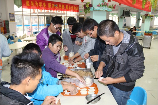 机务工程都是帅小伙,包饺子的功力丝毫不逊色于女生。左手托饺子皮,右手填馅,蘸水,封口……一板一眼,有模有样。辅导员也前来助阵,大显身手。大家兴致颇高,饺子的数量也在不断增加。不一会儿,各式各样的饺子充盈了桌子,包子形、飞碟形、菊花形……虽然饺子形状千奇百怪,但在笑声中,大家忘却了自己略显笨拙的手法,忘却了节日无法与家人团聚的失落,此时此刻,同学便是亲人,民航/飞行bob体育