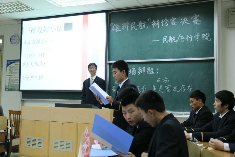 2012年12月16日晚20:30,民航/飞行bob体育 “雄辩民航”辩论大赛总决赛在5103教室正式拉开帷幕。701班及飞行员班的辩手们唇枪舌剑,围绕“美是主观还是客观”的话题展开了激烈的辩论,701班终夺桂冠。