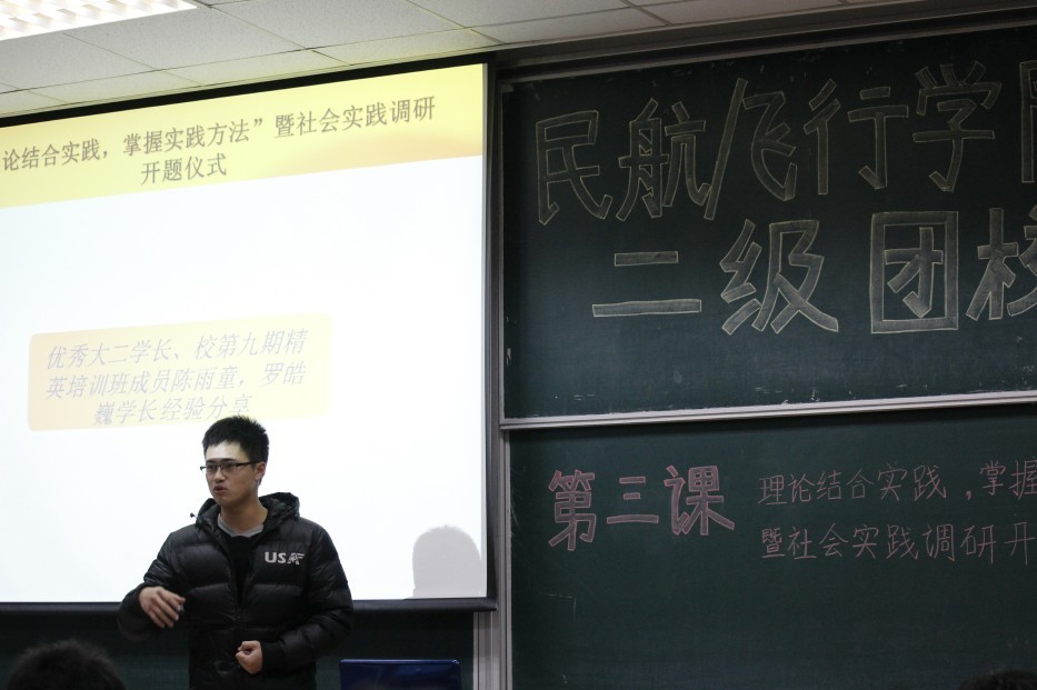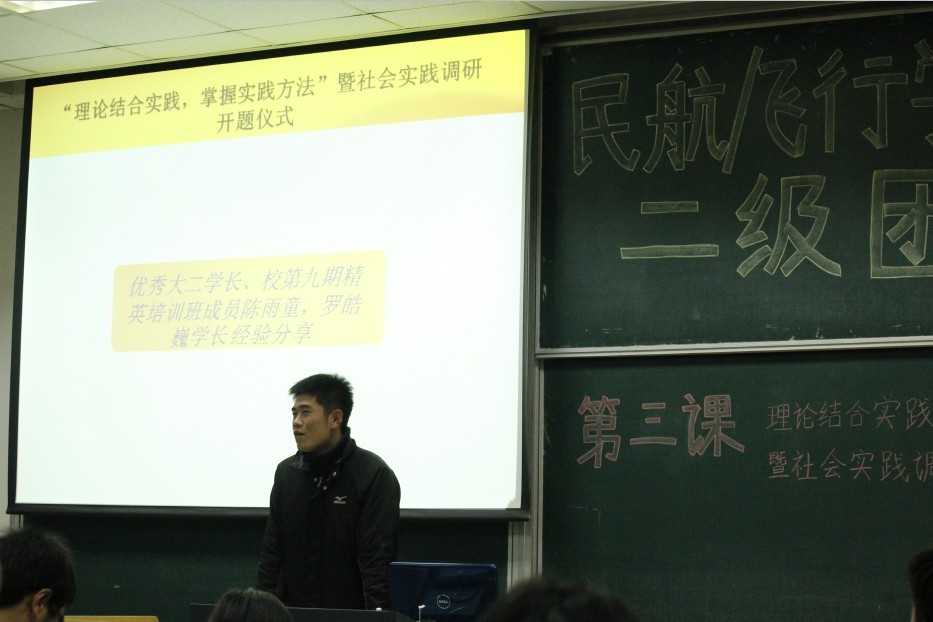 课程第一部分由鲁兴虎老师为学员们带来理论课程第三讲“理论结合实践,掌握实践方法”。他详细地解释了社会调查与社会实践的联系与区别,分析了社会调查的研究对象及目的,耐心地列举了常见的研究方法。鲁老师生动通俗的讲解赢得了全体学员的阵阵掌声。之后优秀大二学长陈雨童和罗皓巍倾囊相授,回顾了自己参加学校精英培训班的经历,总结了自己的心得体会,并对学员们提了一些建议以及自己的期望。进入第二部分后,学员们在老师与学长们的带领下,以班级为单位选择了各班的调研话题。在第三部分中,主持人讲解了本次社会实践调研活动的各项要求。最终二级团校系列课程第三讲暨社会实践调研开题仪式圆满结束。整场活动,老师及学长的讲解介绍生动形象,学员们听讲认真投入,感触颇深。