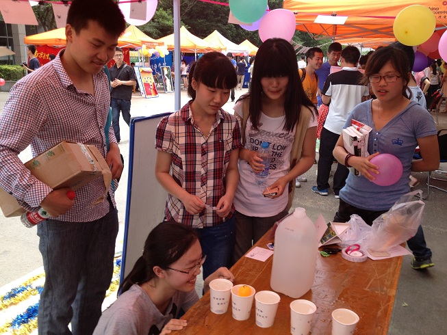 还为这次活动准备了有趣的小游戏,吸引了许多同学驻足参与。只见同学们一个个都专心致志地盯着眼前的乒乓球用力呼出一口气,乒乓球便轻轻地落入前面的杯子里,周围立刻响起一片叫好声。即使没有成功、杯子里的水吹的满脸,同学们也依旧兴致盎然。我们也为积极参与游戏的同学们派发了丰富的奖品。