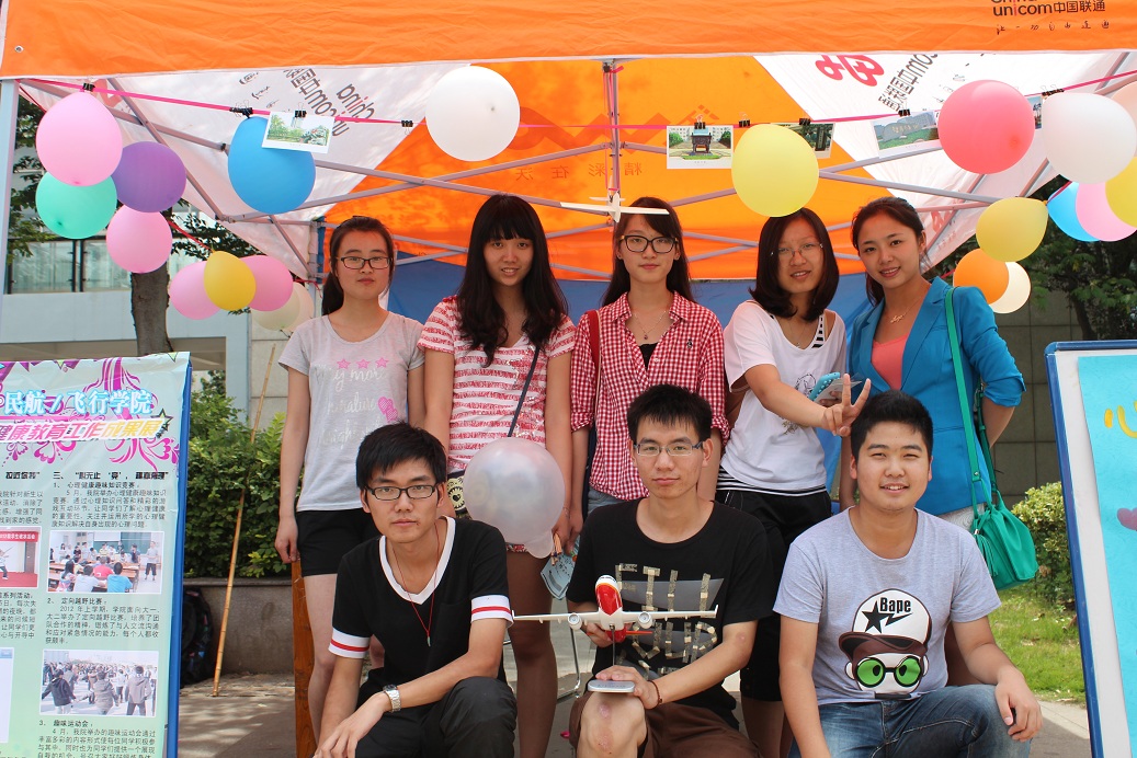精心布置了会场,顶棚周围用一圈明信片与气球做装饰,展台上飞机模型伫立,展台前展板和手绘海报分立两旁,为大家展示bob体育