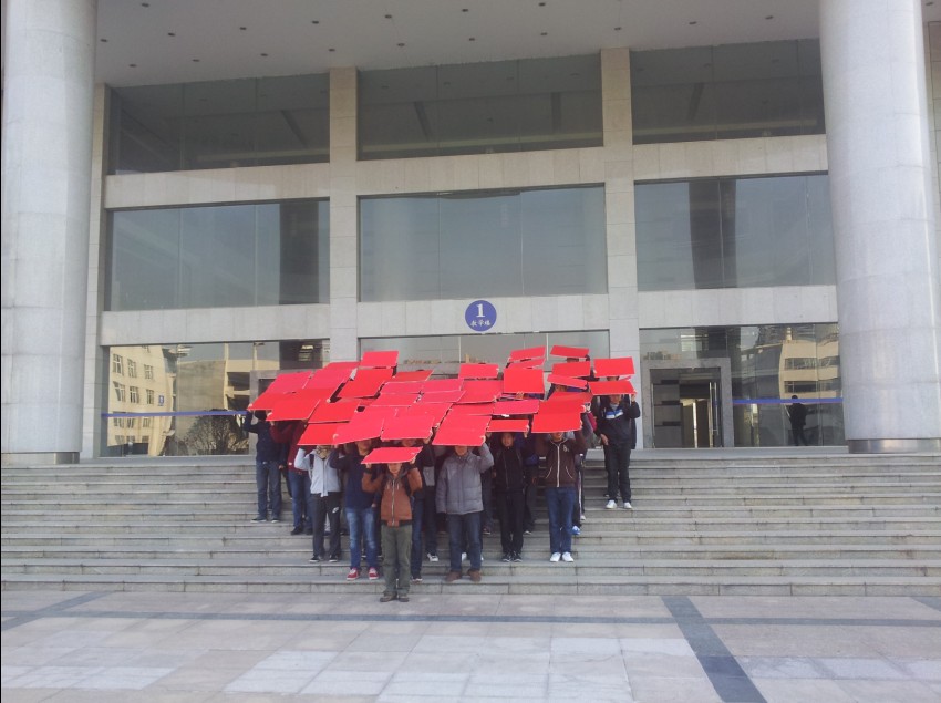 13级的新百名大一新生在一号楼门前广场上集合。伴随着大声呼喊出的“爸爸妈妈,我爱你们!”的感恩祝福,将手中的红色展板拼接成一个心形图案,摄像机记录了这感人的一刻。五十多个冬日里绽放的笑脸,五十多份遥远却真挚的祝福汇聚在一起,视频将发送给家乡的父母,表达对父母最深切的爱。“鸿雁传书,薄信浓情”。同学们在28日中午,将昨晚写好的家书投放在精心制作的“家书投递信箱”中。小小信箱,传递的却是在外的学子们对家人的思念与感激。