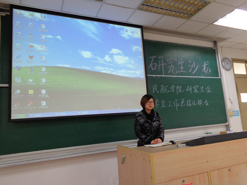 会议伊始,作为主席的章程同学带领大家简要回顾了2013学年研究生会举办的各项活动,并展望了即将到来的2014学年的活动安排。随后,秘书部、组织部、宣传部、科技部、生活部等各部门代表依次上台,通过自己部门精心制作的PPT向大家展示部门成员、本年度成果以及对本年度工作的总结和分析。秘书部的冯杰同学第一个上台,她结合自己切身的工作情况,讲述自己这半年在秘书部工作的心得体会,并且表达了自己对谢菲老师和章程师姐的感谢,感谢她们在工作上给予她的帮助和鼓励。让人印象深刻的是科技部孙悦同学的介绍。在南航这所科研氛围十分浓郁的高校,科技创新是永恒不变的主题。科技部当仁不让地举办了许多有益于研究生科创的活动。孙悦同学表示举办这些活动不仅拉近了部门成员之间的距离,而且让她学到了很多东西。这样既能玩又能学的良好互动丰富了她的课余生活。文艺部的PPT展示别出心裁,由两位同学上台讲解,他们像说对口相声一样风趣幽默地介绍文艺部的部门成员和活动成果,引得在场同学阵阵欢笑,将整个会议活动推向高潮。部门代表讲完PPT之后,章程主席都会有简短的提问,帮助各部门发现自己现阶段工作中存在的问题,如部门内部同学分工还有些不合理,部门间合作不够密切,处理突发事件的能力还有待提高等,引导大家正确认识自己部门的职责,期待大家在下一年的工作中有更好的表现。