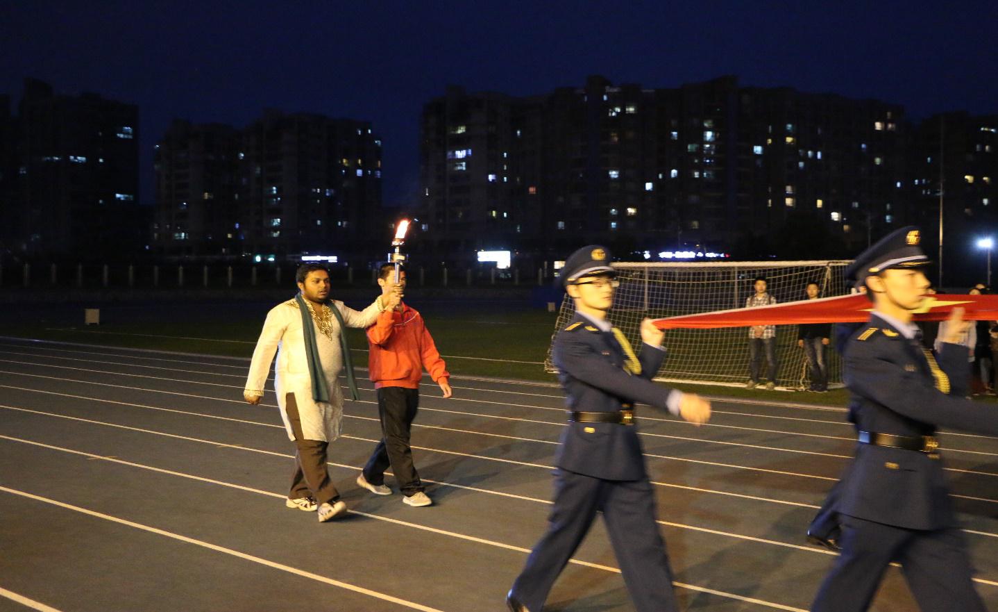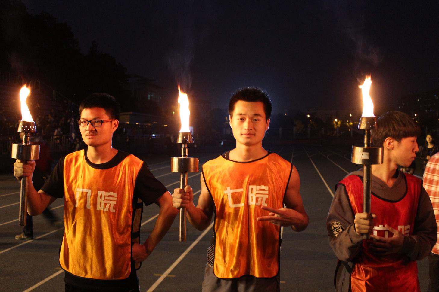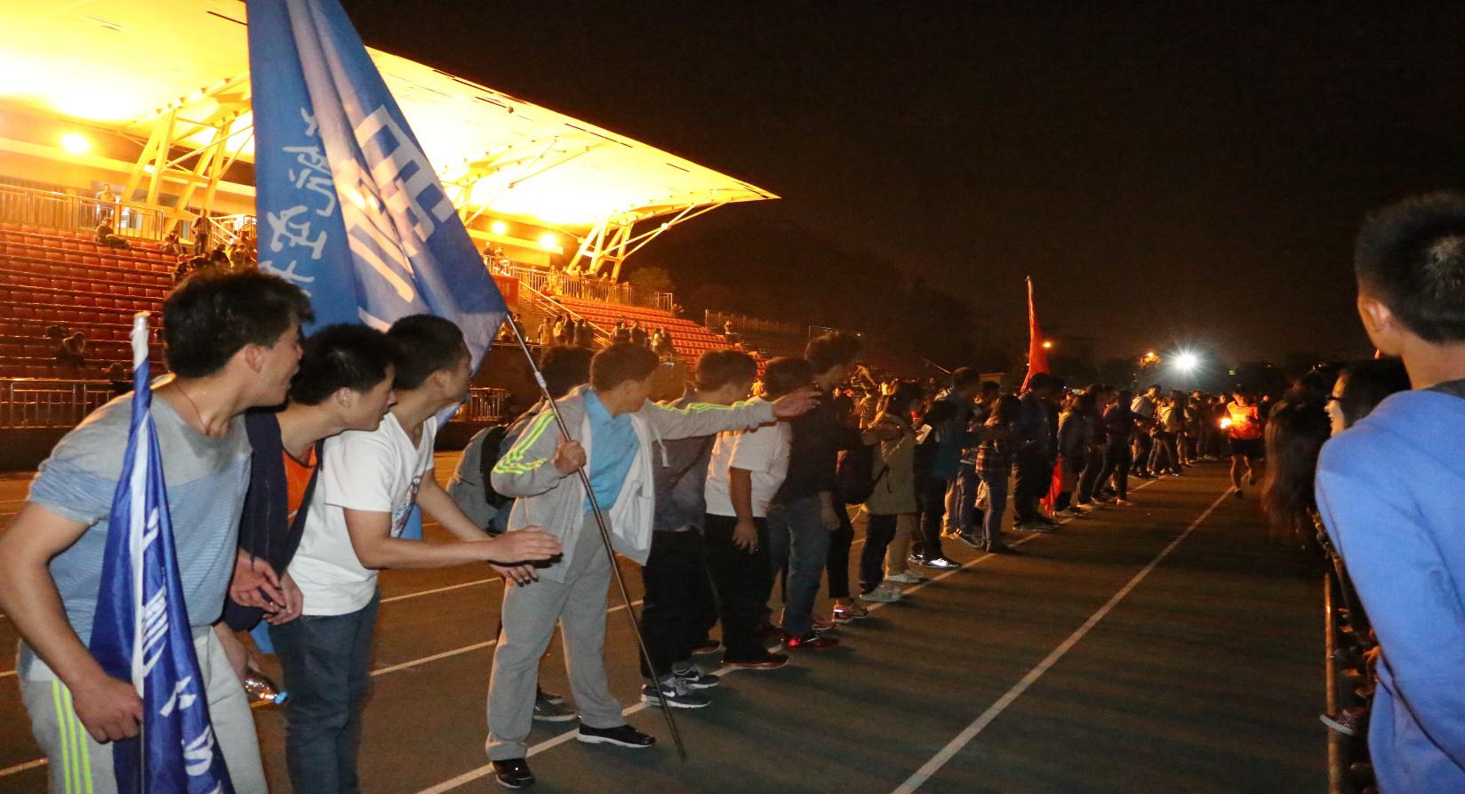 领导把火炬传递给每支参赛队伍中领跑的运动员,紧张激烈的比赛正式开始。每支接力队由十男两女组成,分别绕着操场外的指定路线和操场跑道完成接力。黑暗中闪烁的火光,运动员们矫健的步伐,观众们热情的呐喊,青春的光芒在校园的每个角落闪耀。在比赛过程中,最引人注目的要属民航/飞行bob体育