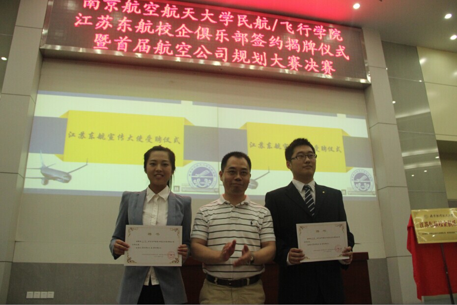 2014年6月13日晚上7点江苏东航校企俱乐部签约揭牌仪式在我校将军路校区一号楼四楼报告厅隆重举行。出席此次揭牌仪式的有江苏东航人力资源部规划配置部管理主管王心磊女士、飞机维修部副总经理兼总工程师肖志华、飞行签派分部高级经理杨加勇先生、飞机维修工程部工程师陈勇先生、人力资源部王树红女士,校学生处副处长许爱华老师、bob体育官网 党委副书记宋凯老师、bob体育官网 交通运输工程系主任曾小舟老师、bob体育官网 交通运输工程系吴薇薇老师。参加此次揭牌仪式的还有校企俱乐部首批会员以及来自民航/飞行bob体育 的老师与同学。