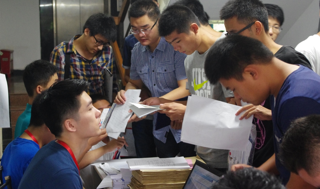 的报到处。也有不少家长陪着自己的孩子,他们手里提着大包小包,风尘仆仆,脸上却掩饰不了自己孩子考上研究生的喜悦。本次新生报道采取现场网上注册的形式,现场的工作人员相互分工,每道流程都有条不紊的进行着。报道时,bob体育