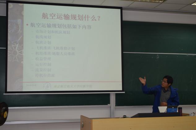 此次活动共分为“传道授业”和“现场提问”环节。在“传道授业”环节中,杨教授从航空运输规划的基本内容入手,讲述航空运输规划的必要性、流程和操作方法。首先他以美国联合航空公司和美国西南航空公司为例分析了全方位航空和低成本航空两类不同性质的航空公司在运输规划上的不同特点。全方位航空公司面向的顾客更为广泛,各种级别的舱位设置一应俱全,而低成本航空公司主要针对休闲旅客,往往只设有经济舱。这就决定他们要针对不同的客源对象进行有针对性的航空运输的规划。紧接着他讲述了航空运输规划的流程由战略层次、战术层次和操作层次三部分组成,具体来说航空运输规划的第一步是制作是生产计划,有了生产计划,航空运输才可以按照生产组织流程进行生产。其中航班计划是最重要的生产计划,有了航班计划,接着进行航线网络的设计、机队规划、机场规划以及飞机路线的计划和飞机维修计划,最后是机组排班和地面服务人员排班。在讲述航空运输运营规划的具体操作时,杨教授指出航空运输规划应该使用系统优化的方法,应用情景分析、随机分析和鲁棒优化技术,结合人工智能技术,寻找有效地预测和决策方法,并有效使用计算机管理系统(Ilog、POEM、Matlab等),同时还要注意有关人才的任用和专业研发队伍的培养。