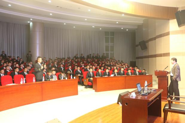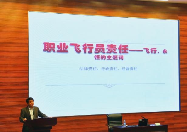 舒明江首先从一名飞行员所需要的资质说起,结合在校学员现实情况,对专业知识学习、身心素质、英语能力、飞行训练等方面做了详细阐述,并对飞行员职业道德和飞行作风进行解读,强调两者的重要性。接着,他结合自身经历对学员的生涯规划提供了指导和建议。随后,舒明江又针对学员对飞行职业的好奇和向往,就他如何坚守飞行员这个职业结合丰富的图片展开了讲述。舒明江机长强调了飞行永恒的主题词——责任,指出飞行员光环的背后更多的是一种责任。