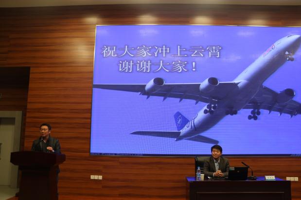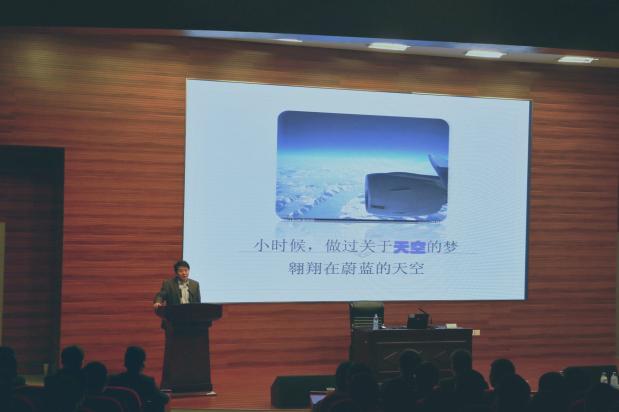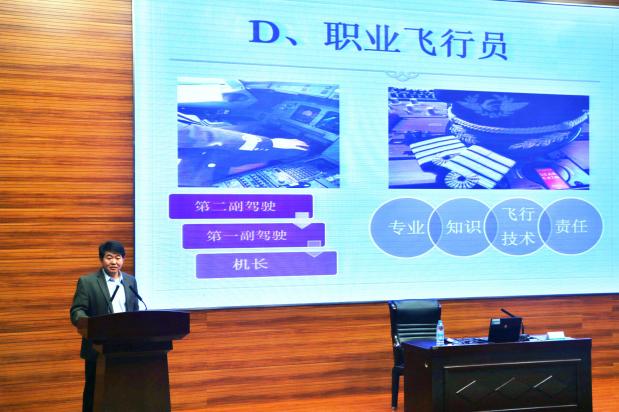 舒明江毕业于飞行技术专业,1989年在中国东方航空公司上海飞行队开始了他的飞行生涯,从一名普通的飞行员一路走到机长再到东航的管理岗位,主持人对舒明江的介绍吸引了在场学员。舒明江或慷慨激昂或饱含感情的言语,从资质要求、职业规划、安全责任三个方面为学员们带来了一个半小时的精彩演讲。此外,舒机长从自身出发,讲述了他个人的成长经历,带领学员感知如何成为一名优秀机长的历程。