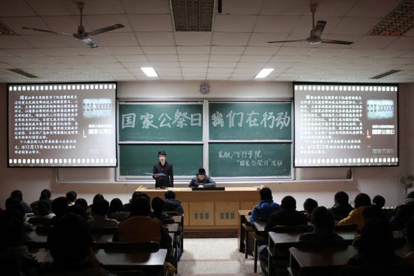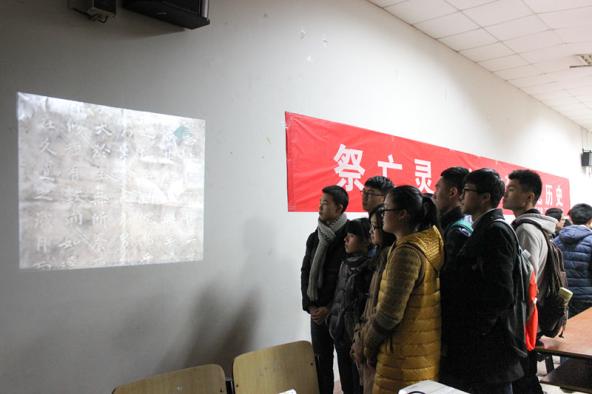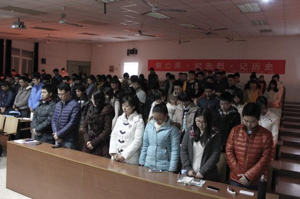 2014年12月12日晚八时许,在12·13国家公祭日来临之际,民航/飞行bob体育 组织同学在南京航空航天大学将军路校区4101教室举行了全国公祭日——“祭亡灵,纪先烈,记历史”主题活动,为南京大屠杀三十万余遇难同胞而痛心哀悼。13级辅导员康冲、14级辅导员梁欢出席本次活动,与学生一同悼念同胞。