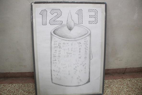 接下来四位同学的诗朗诵《国家公祭,天下执丧》,铿锵的字句回荡在教室,让同学们满腔的痛与哀转化为振兴中华民族的力量与热血。国家公祭,天下执丧,一首楚辞道不尽华夏大地的哀痛。最后同学们在哀悼板上纷纷留名,这不仅仅是简单的留名,更是一种责任的担当。