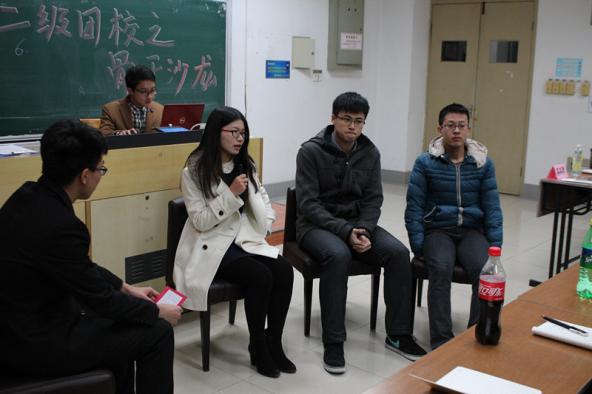 2014年12月17日晚七点,二级团校选修课“骨干沙龙”交流会于6201教室正式开始。此次交流会邀请到了罗浩巍、陈思、成正强三位优秀的民航学子,为团校学员们讲述他们的成长历程,分享他们学习和生活中的宝贵经验。