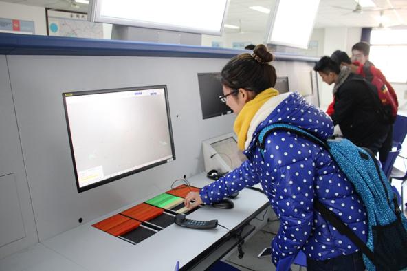 第二站,同学们走进空管模拟实验室,了解了雷达管制与程序管制之间的区别和空中管制所具有的重要意义。在这一站结束时,前学生会主席罗皓巍学长还主动与同学们交流关于空中管制的心得感想。第三站,讲解员带领同学们来到A320型号模拟飞行实验室,为大家解释该A320型号飞机的主要构成和实验室中A320型号飞行训练器操作规范。讲解结束后,讲解员还请同学们坐上训练器体验一次飞行的感觉。在三个实验室参观完毕之后,同学们在民航工程中心楼合照,相互交流本次活动的心得体会。
