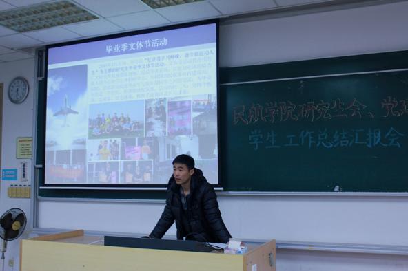 会议第二部分为主席团的整体工作汇报,主席赵逸群就此做了深刻的年度工作总结。2014,bob体育官网 举办了一系列丰富活动:在上半年,主要开展了以研究生毕业季展望未来,就业培训,素质能力拓展,及暑期研究生社会实践等为主题的活动;下半年,主要开展了新生系列活动,学术沙龙,素质能力培训沙龙。其中,重点包括别具一格富有民航特色的“开学第一课”,青年教授论坛,以及研究生国家奖学金系列活动,在举办国家奖学金获得者风采展示活动时坚持“闪耀风采展示与优秀能量传递”的格调,不仅见证了优秀的高年级研究生的科研成果,更是为研一新生追求卓越树立了榜样。这一年,bob体育官网 在策划举办本院活动的同时,也积极筹备参与校级活动,其中剧目《平凡之路》斩获“第二届研究生音乐情景剧大赛二等奖”及“最佳指导奖”,在“枭龙杯”研究生学术论坛中,邢健同学获得“学术十佳”提名,张马兰同学获得“学术十佳”荣誉称号。与此同时,在党支部建设方面,也取得了骄人的成绩,荣获“优秀硕博实践团队”,“党内优秀主题教育活动”,“先进基层党支部”等荣誉称号,另外,bob体育 13,14级党支部本学期共有三项党内主题活动已得到学校立项。